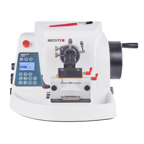 MT1MT1 er en semi-automatisk rotasjonsmikrotom som kombinerer høy presisjon og ergonomisk design for en effektiv og brukervennlig opplevelse ved snitting