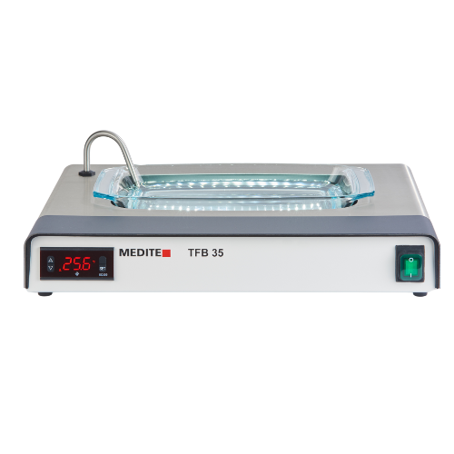 TFB 35TFB 35 er et rektangulært og fleksibelt vannbad med LED-belysning, uttakbar glassbeholder, oppvarmet kant og presis temperaturkontroll